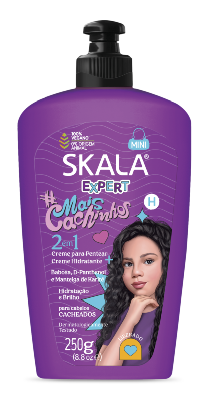 Los productos Skala Kids fueron desenvueltos para ayudar en la rutina de cuidados con los niños de cabello rizado y crespo, principalmente en la hora del desenredar. ¿Sabe un producto que siempre querrá utilizar aún que su cabello esté maravilloso? Es este. ¡Mira, él es DIVINO! Y lo más Increíble: Él puede ser utilizado con Crema de Tratamiento o Crema para Peinar. Es solo pasar en su cabello y dejarlo por el día. El elimina el frizz, hidrata, reaviva el cabello opaco, da volumen en la medida correcta y modela los rizos de manera suave sin dejar residuos.